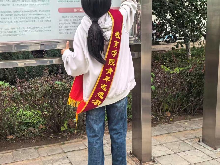 为给同学们打造整洁、美观的活动场景,优化校园环境,改善校园展板因灰尘、污渍等导致的信息传递低效的问题,2025年10月15日,教育学院开展“拂去尘垢,点亮展板”志愿活动。