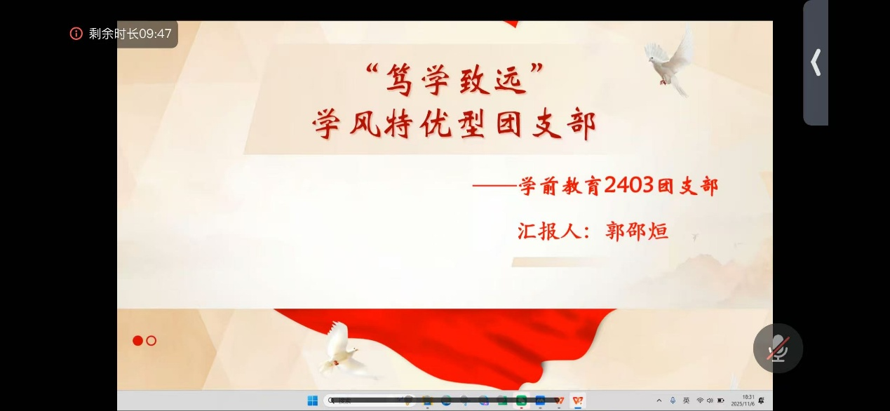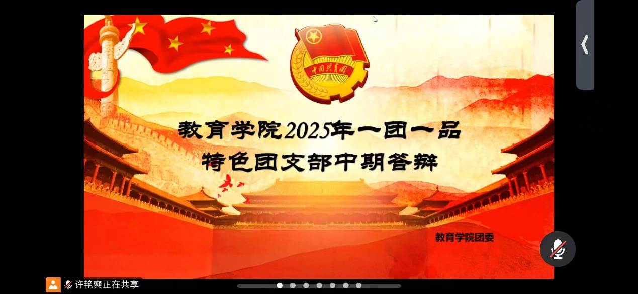 为进一步激发基层团组织活力与凝聚力,充分发挥团组织立德树 人核心作用,同时搭建团支部间互学互鉴的平台,2025年11月6日,教育学院开展2025一团一品特色团支部中期答辩活动,23、24级本科和24级研究生所有团支部参与,学工办老师出席本次答辩会。