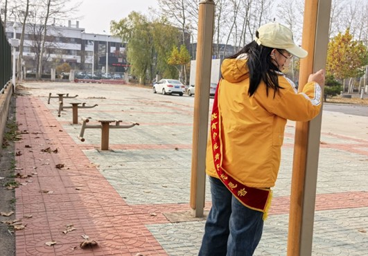 活动当天,志愿者提前到达活动场地,自行分组拿好清扫工具后到达指定地点进行清洁,志愿者们认真仔细清理运动设施表面积聚的尘土、浮灰以及其他杂物,并在清理结束后将所在区域垃圾收拾干净,仔细检查避免遗漏垃圾。
