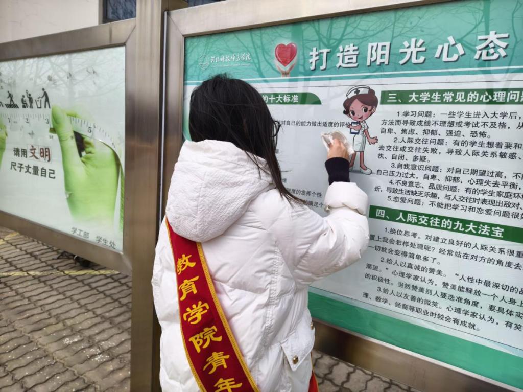 为进一步美化校园环境,提升校园公共区域视觉观感,营造整洁有序、文明清新的校园文化氛围,2026年3月4日,教育学院开展“擦亮公告栏,焕新校园窗”志愿活动。