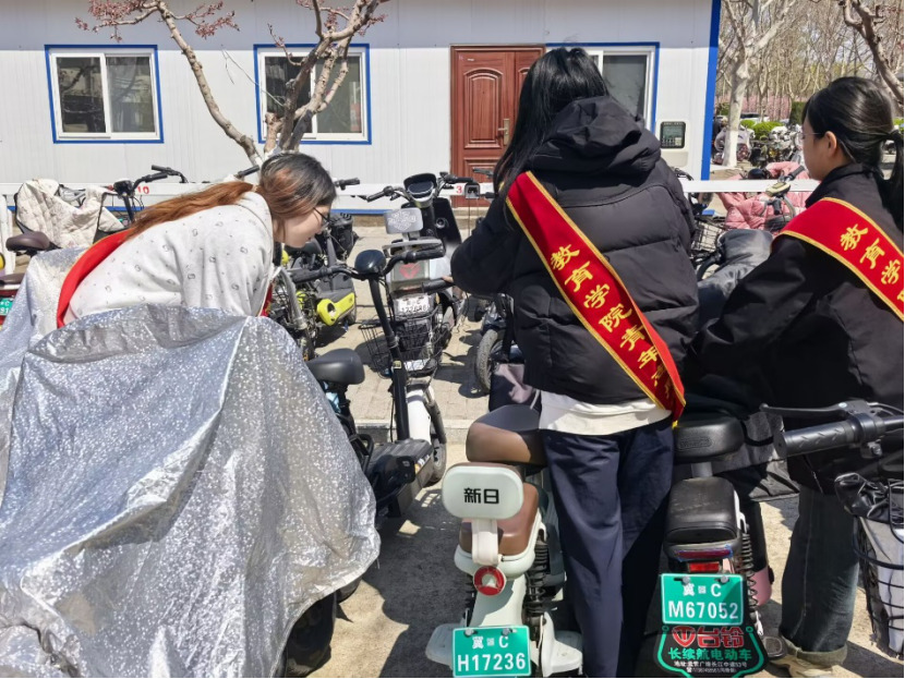 为了提升校园环境质量,保证校园的通行效率与公共安全,同时引导同学们养成规范停车的文明习惯,推动文明停车理念在校园内传播。2026年4月9日,教育学院开展“有序停放,文明出行”志愿活动。