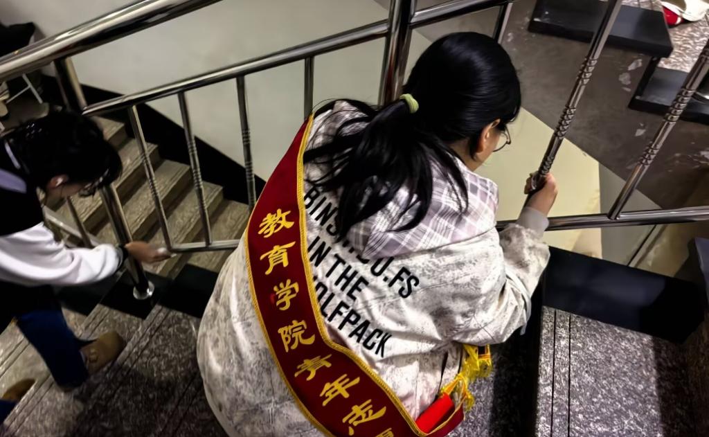 活动过程中,志愿者们自带纸巾、抹布等清洁工具,准时到达指定地点,并在负责人的安排下有序分组,对楼梯扶手进行了全面擦拭和清洁,从扶手上表面到转角处,从栏杆缝隙到边缘角落,志愿者们一丝不苟,力求不留死角。整个过程中,志愿者们安静有序,分工明确,展现了良好的组织纪律和服务意识,维护了校园的公共卫生环境。(编辑:万玉良 审核:孙华)